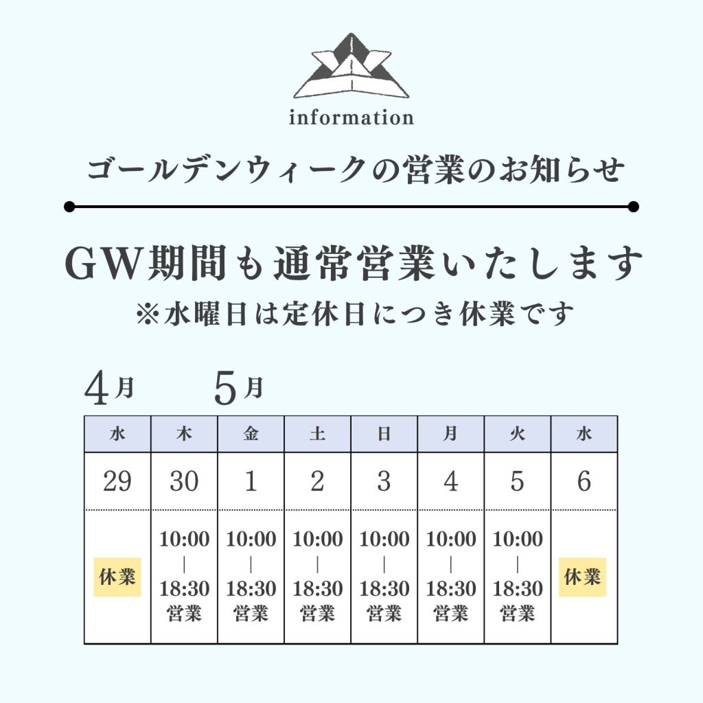ゴールデンウィーク期間中も、当店は通常通り営業しております。